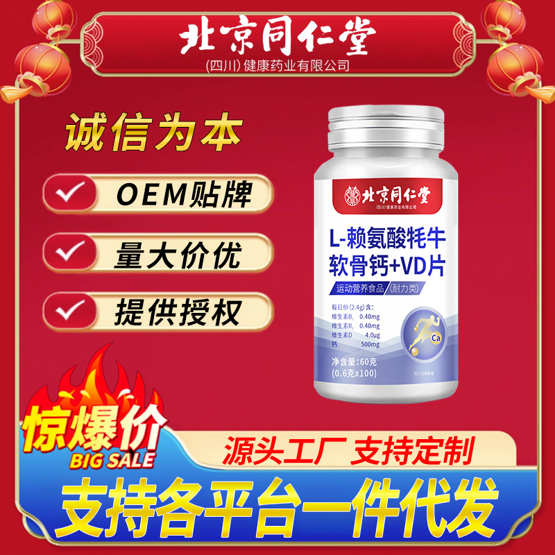 北京同仁堂朕皇L-リジンは牛軟骨カルシウムv d片100錠/瓶の代理品を持っています。