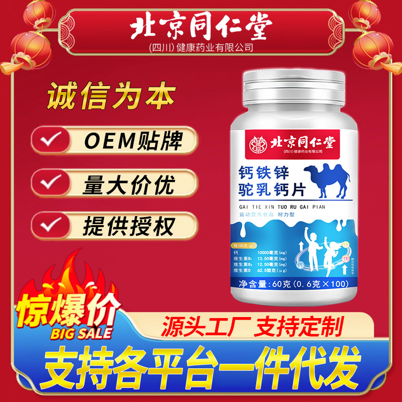 北京同仁堂朕皇カルシウム鉄亜鉛ラクダ乳カルシウム片100枚/瓶の代理現物卸価格