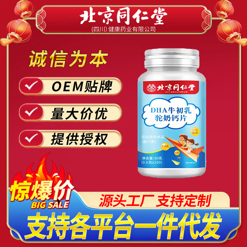北京同仁堂朕皇DHA牛初乳ラクダ乳カルシウム片100枚/瓶現物卸売り代理
