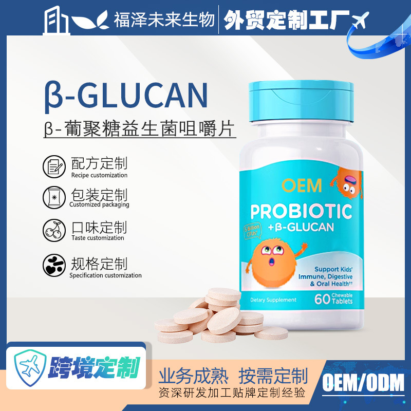 越境カスタマイズ 子供用プロバイオティクスβ-グルカンチュアブル錠 ビタミンC、亜鉛OEM カスタム加工