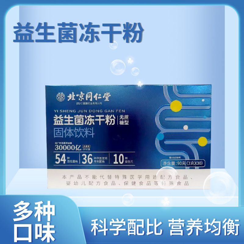 北京同仁堂益生菌冷凍乾燥粉砂糖なし固形飲料90グラム (3グラム * 30袋)/箱