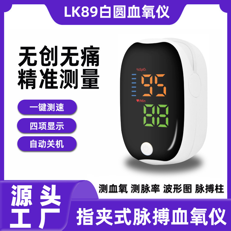 クロスボーダーLK89ホワイトラウンドFDAフィンガーバンド型血中酸素濃度計医療用血中酸素飽和度モニターポータブルモニター
