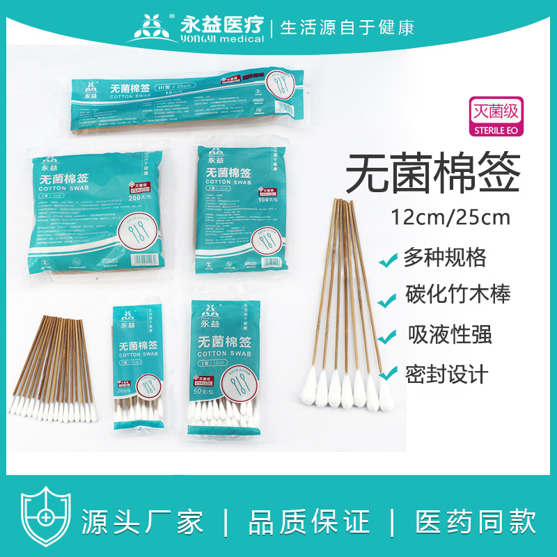 永益医療12cm25cm無菌綿棒消毒保護使い捨て医療滅菌綿棒大頭綿棒通