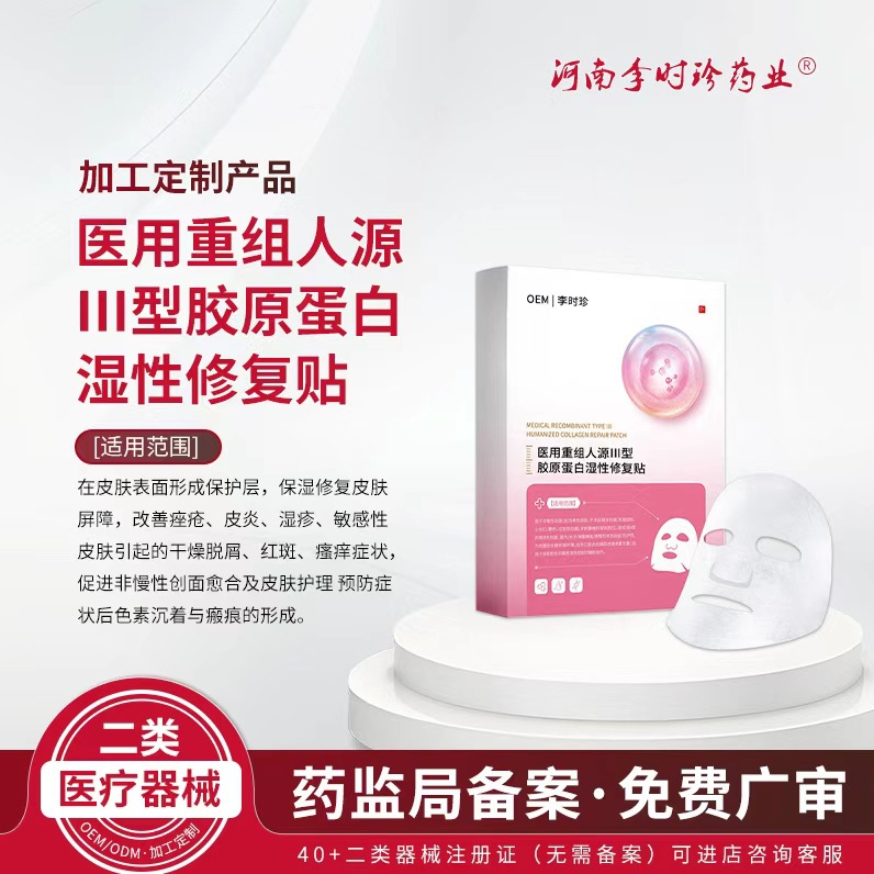 敏感肌、ニキビ、皮膚炎用のカスタマイズされた医療用再構築ヒト型コラーゲン 3 型ウェット修復パッチ医療用マスク