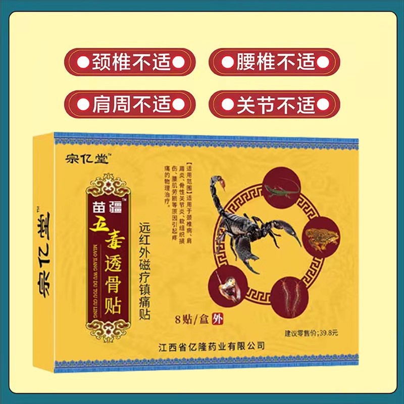 苗疆五毒透骨パッチ関節と頸椎の不快感発熱ヘルスケアパッチ老黒軟膏万通透骨パッチホットスタイル卸売