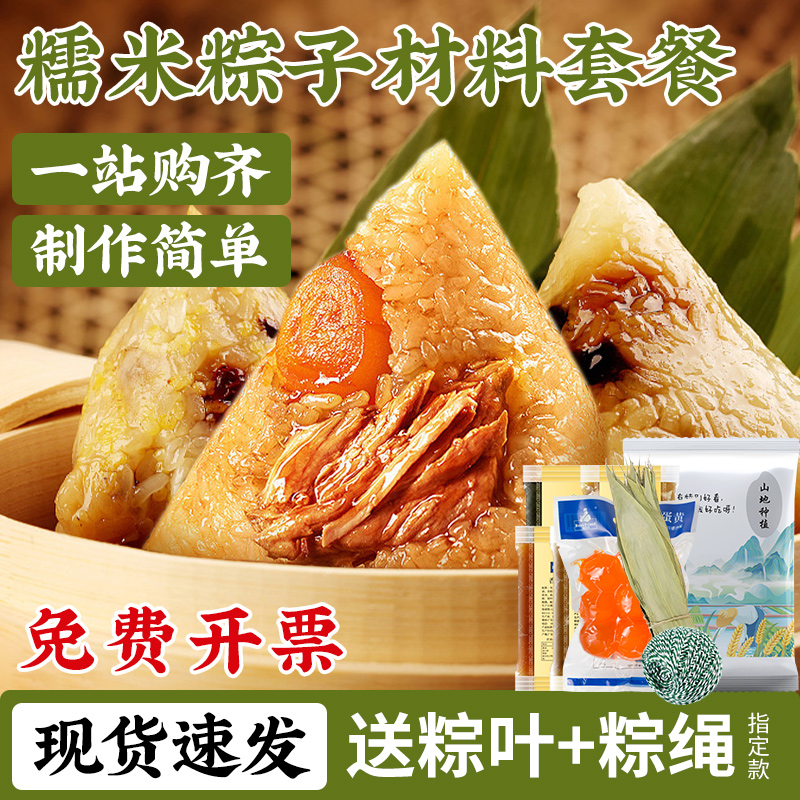 手作りのDIY団子の材料、卵黄、肉団子、あんこ、蜜ナツメ、甘い団子の葉、もち米、端午節の共同購入のフルセット