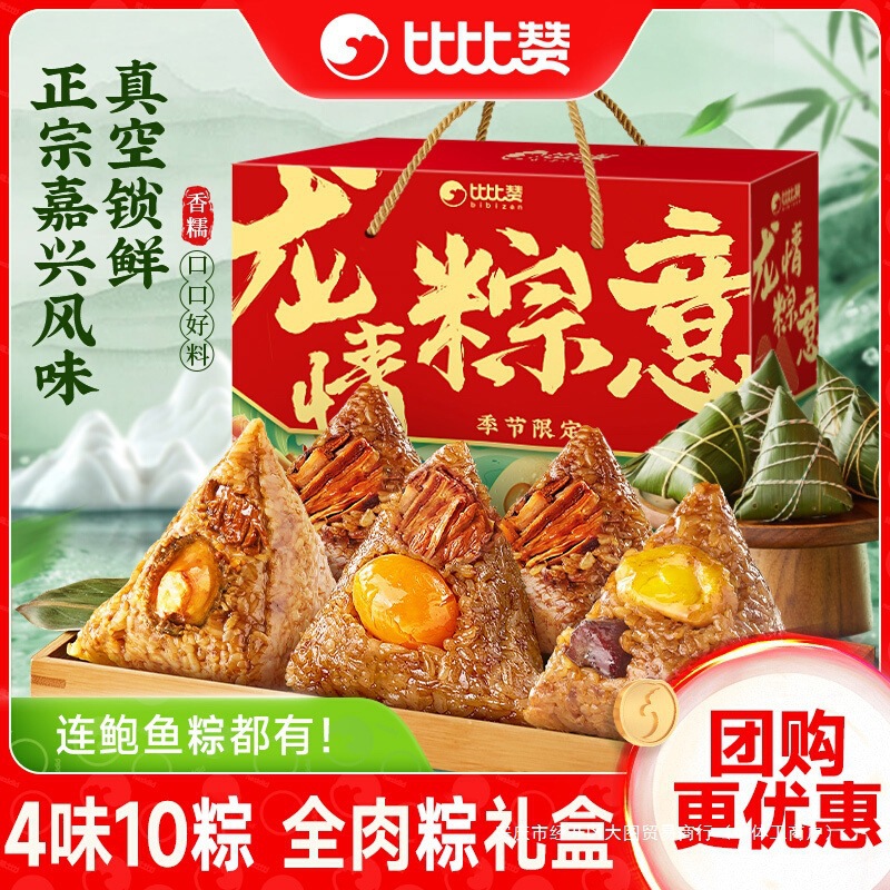 Bibizan 生肉団子ギフトボックス 嘉興風味の新鮮な卵黄肉団子 端午の朝食 豆餡と蜜ナツメの甘い団子