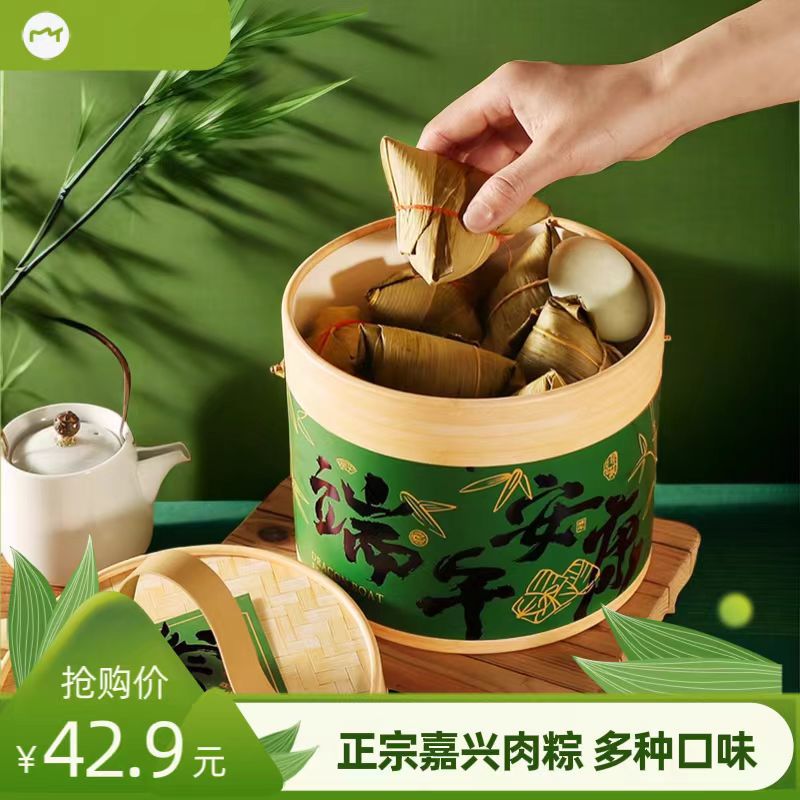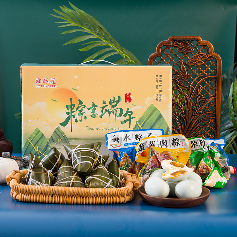 嘉興の粽子ギフトボックス、卸売伝統ギフトボックス、新鮮な肉入り粽子、卵黄栗入り肉粽子、蜜棗豆沙入り肉粽子
