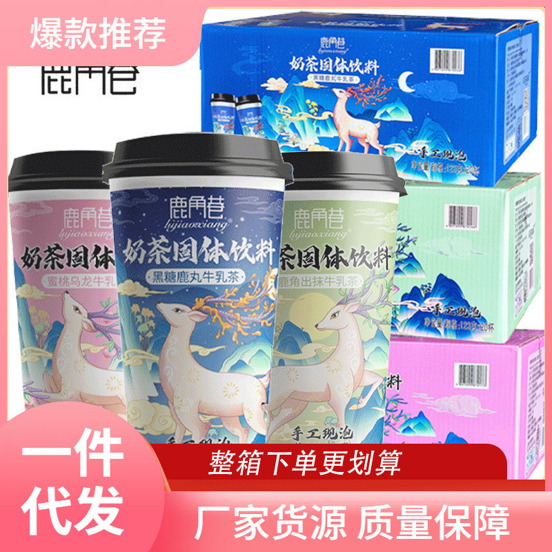 Lujiaoxiang ミルクティーミルクティーフルボックスインターネット有名人香港スタイル手回し小豆パールミルクティー作りたてインスタント朝食ドリンク