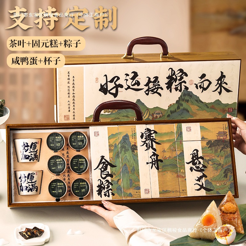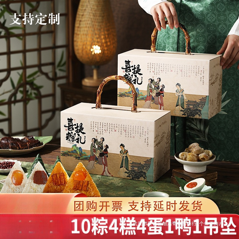 Zongzi ギフトボックス無垢材キャリーボックスグループ購入カスタマイズ嘉興卵黄肉団子旗艦店甘い団子端午節ギフト