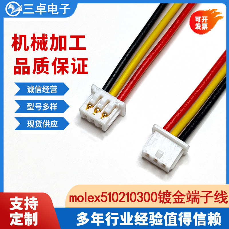 MOLEX 51021-0300 金メッキ端子オリジナル本物 1.25 ミリメートル間隔端子線赤黒線加工