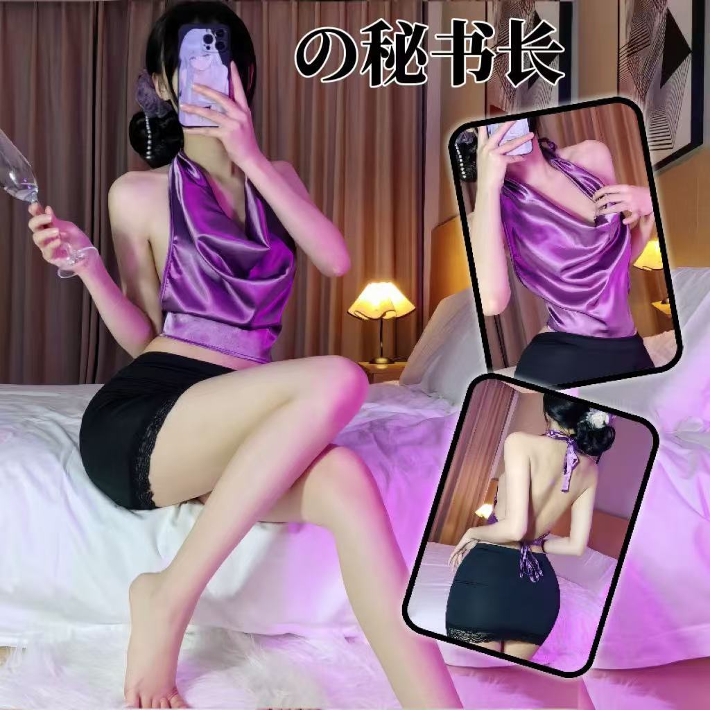 夜店の紫色のレースのヒップスカートの事務室の秘書の制服はパジャマの女性のセクシーな趣味の下着のスーツの女性を誘惑します。