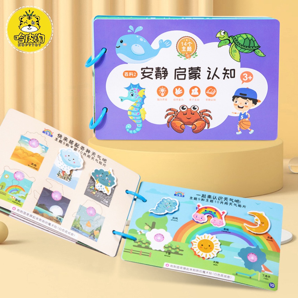 静かな本 手で切れる本 赤ちゃん認知 子供の早期教育啓発 ベルクロ引き剥がし貼り付け本 赤ちゃんのおもちゃ 2歳 6