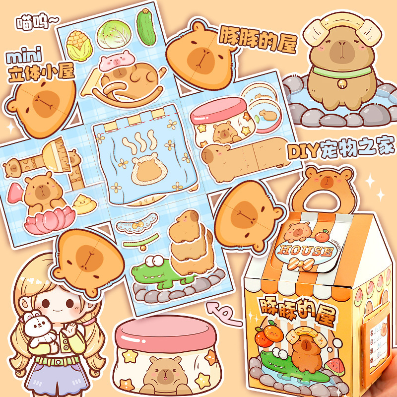 ティラード萌えペット静かな部屋の手帳に女の子の立体静かな本diy材料手帳シール玩具を貼る