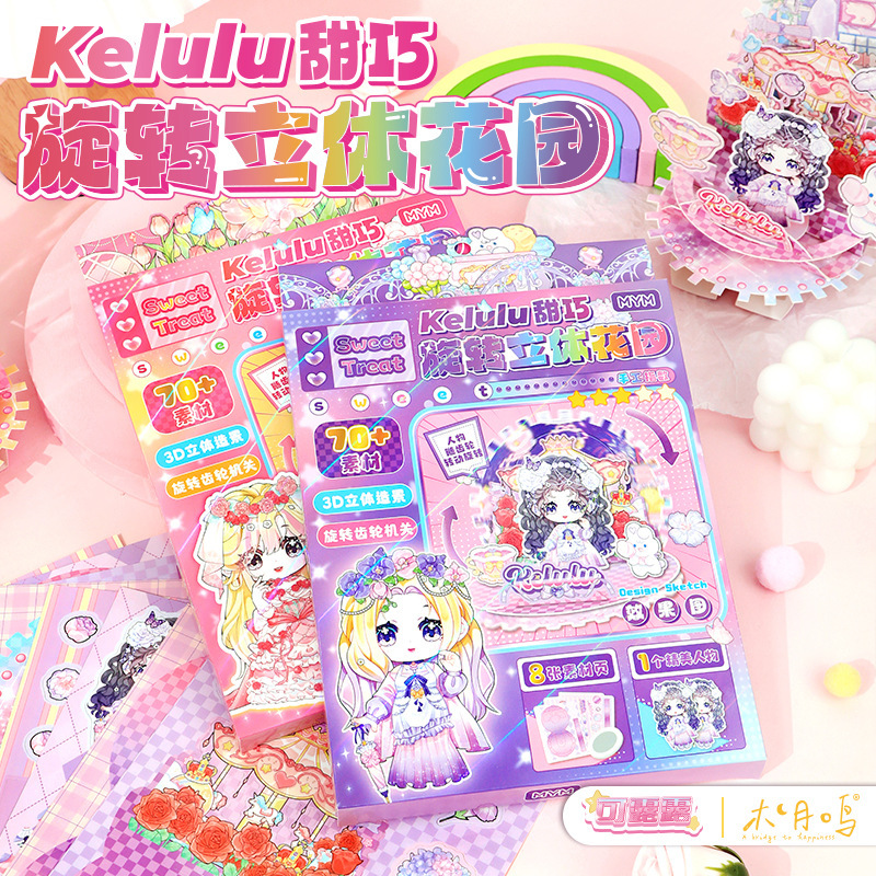 Kelulu スイート回転立体庭園かわいい女の子シーンステッカーブック子供の知育玩具クリエイティブ