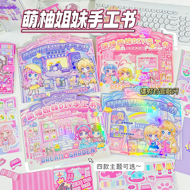 萌え柚姉妹DIY玩具手作り本子供着せ替えシール本女の子おまままごと無料裁断静か本
