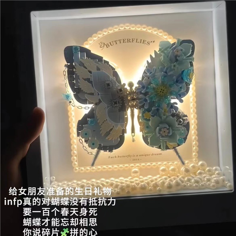 蝶ビルディングブロック立体絵画 DIY 組み立て装飾品ピンク蝶花言葉フォトフレーム組み立ておもちゃガールフレンドのための中国のバレンタインデーのギフト