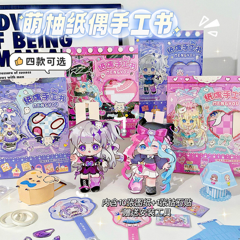 子供用diy紙人形本材料バッグ萌え柚姉妹手作り紙人形静かな本無料裁断玩具本セット