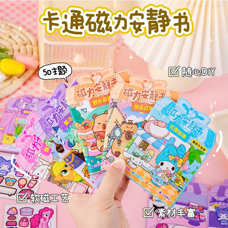 新しいアップグレードされた磁気静かな本カットなしサンリオ磁気ステッカーブック子供のギフト楽しいドレスアップおもちゃ