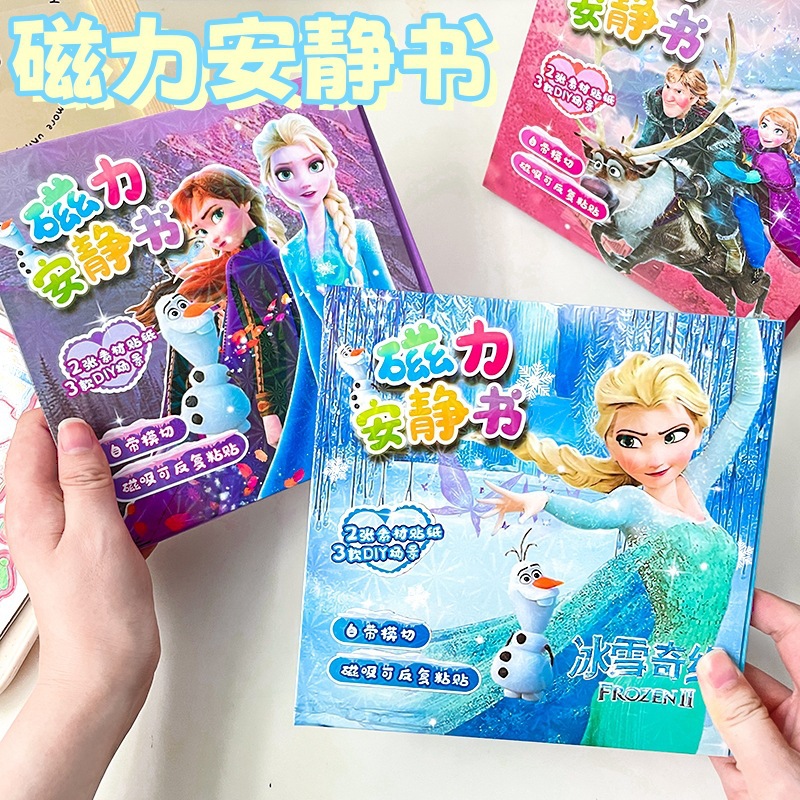 磁気ブック、面白くて可愛いエルサ姫の磁気ステッカー、強力な磁力、磁気接着剤、クリエイティブなおもちゃ、ギフト、DIY手作り