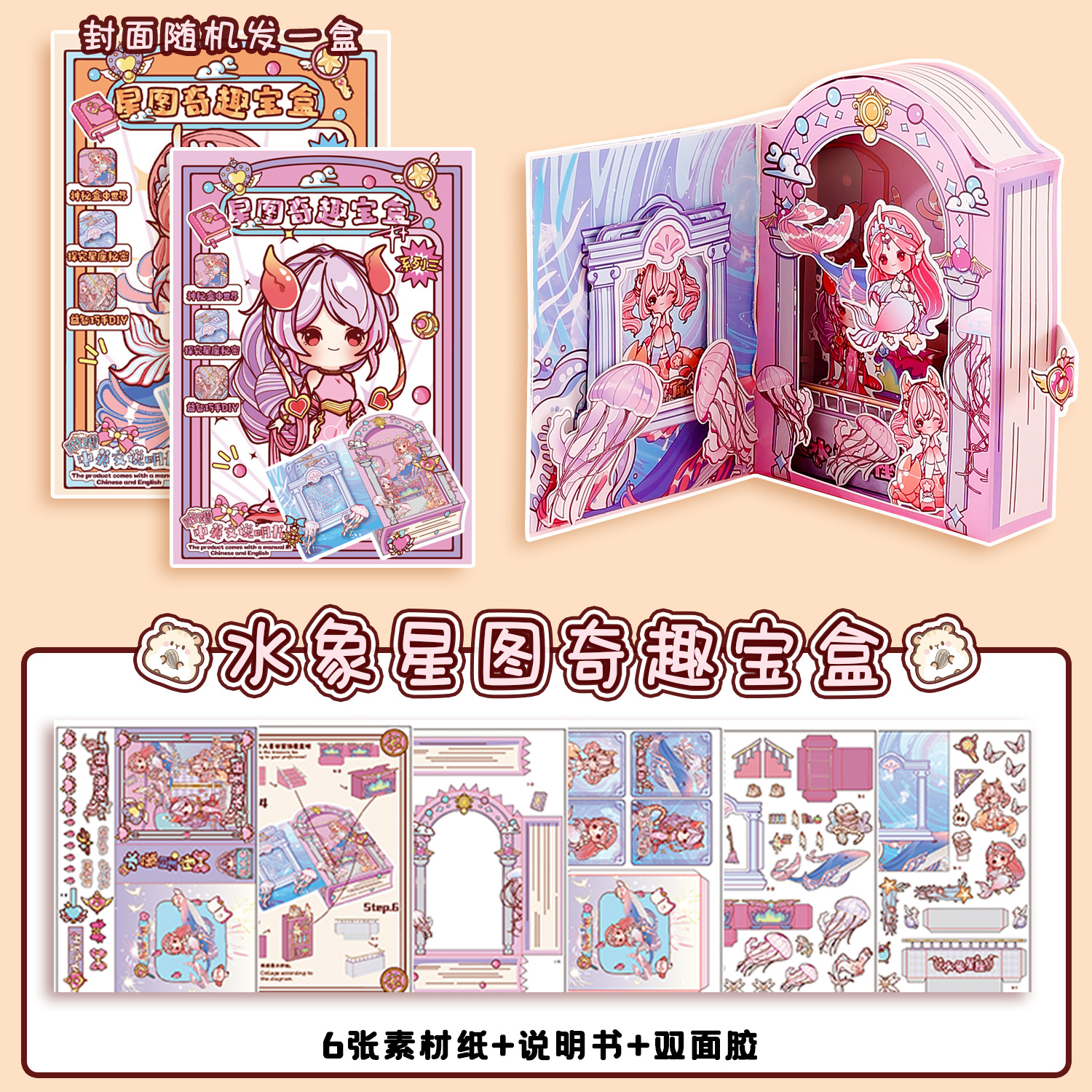 子供の手作りDIY無裁断静かな本星図宝箱機関書3d立体アニメ少女手作り玩具