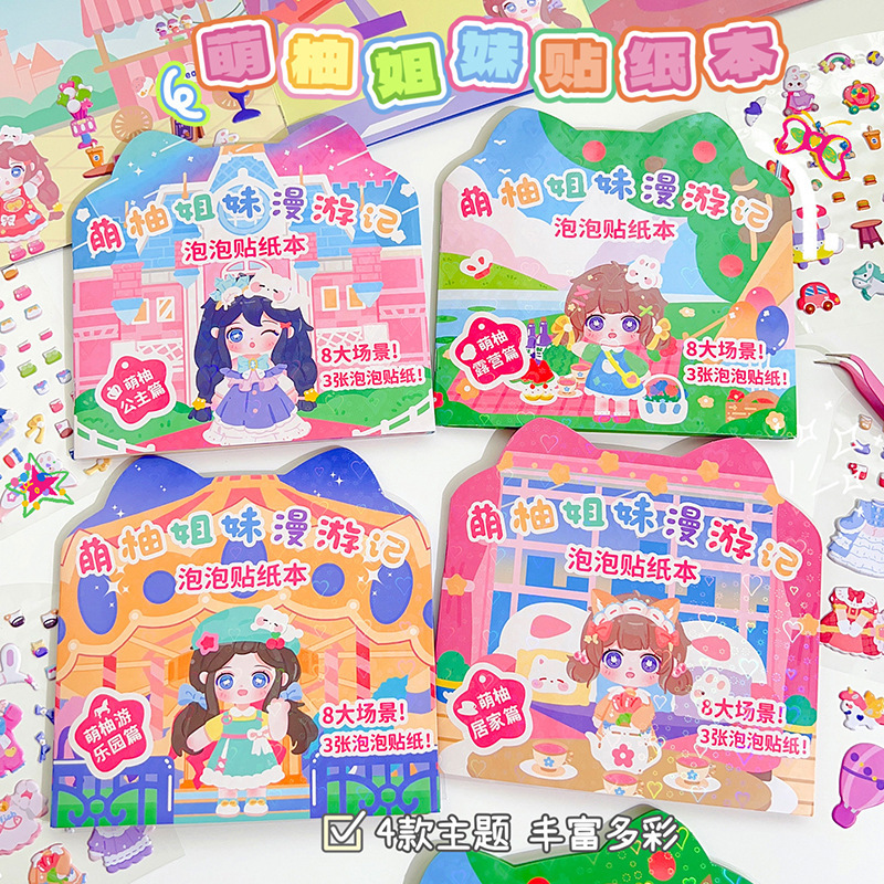 萌え柚姉妹立体泡シール本かわいい女の子diy着せ替え静かな本子供造景シール本