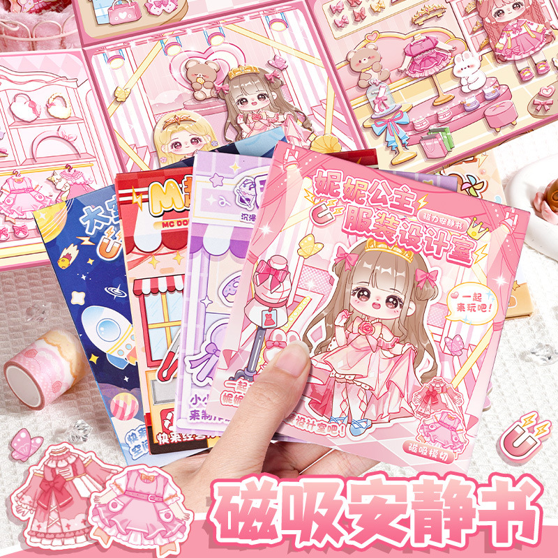 磁気静かな本の新型の女の子のかわいい漫画は裁断しないで手作りの磁気を吸ってdiyポケットの静かな本に着替えます。