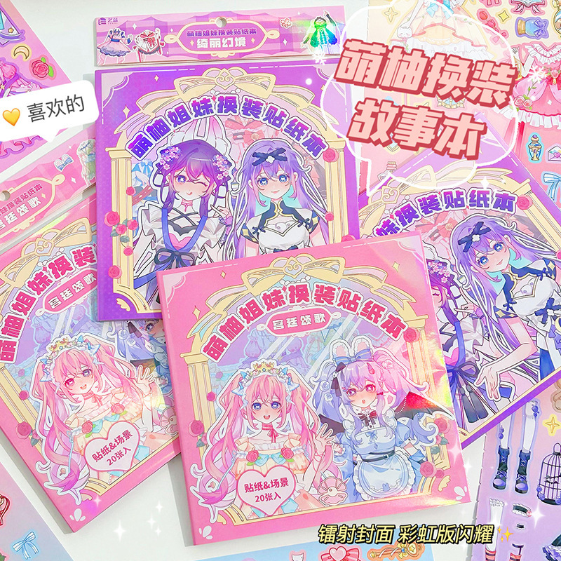 萌え柚姉妹アニメ着せ替えステッカー本女の子お姫様ストーリー本子供DIY手作り着替え絵本
