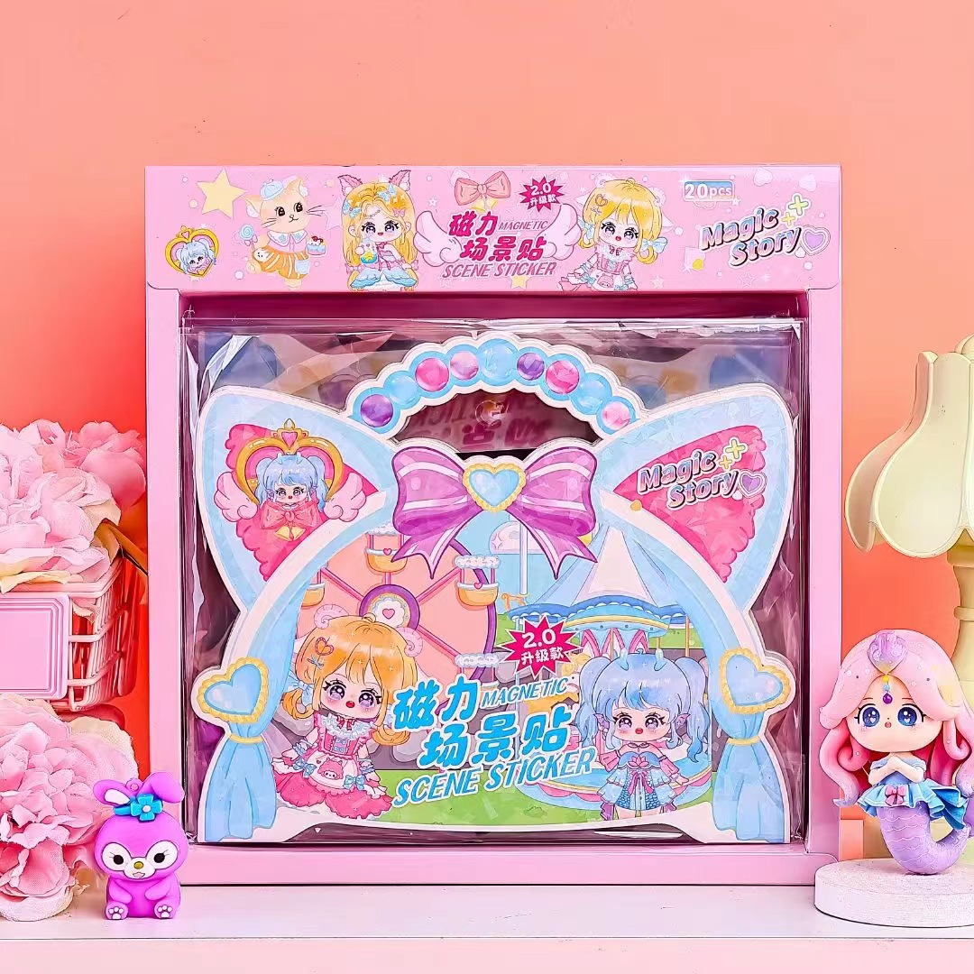 MOMOちゃん磁力静か本女の子子供知育着せ替えマグネットステッカーかわいいトリミングなしステッカーシーン贴り