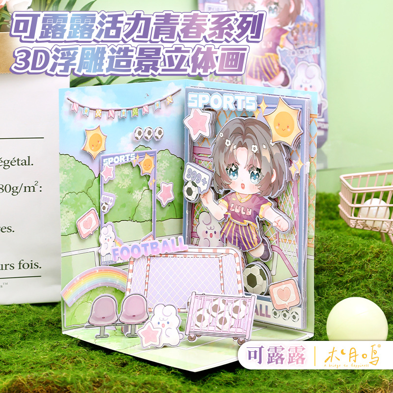 露露活力青春3d浮き彫り造景立体画少女diy静かな本子供シーンタイル素材