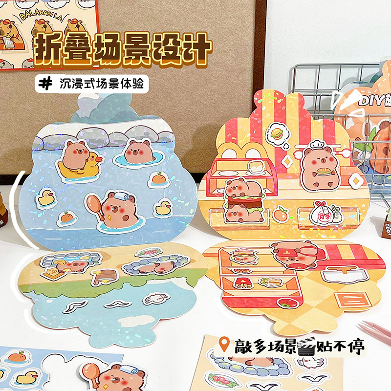 新商品のカピバラジワ磁気静かな本の女の子diy無裁断玩具カピバラ磁気吸着換えシール