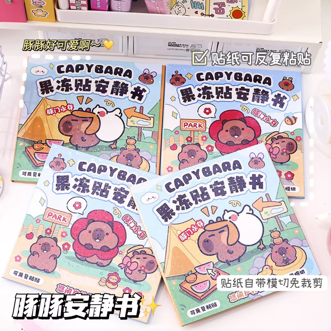 カピバラゼリー貼付楽ゲーム本DIY繰り返し貼付可能手帳静か本子供益智玩具