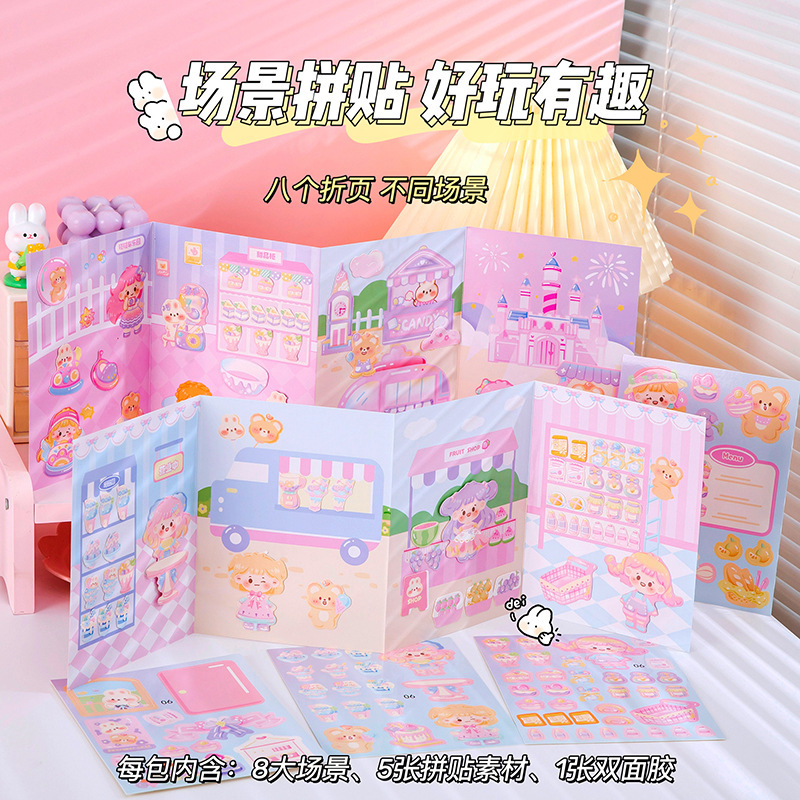 子供の楽しい没入型ブックかわいいバブルステッカーブック美少女 DIY シーンモデリングドレスアップステッカー静かな本