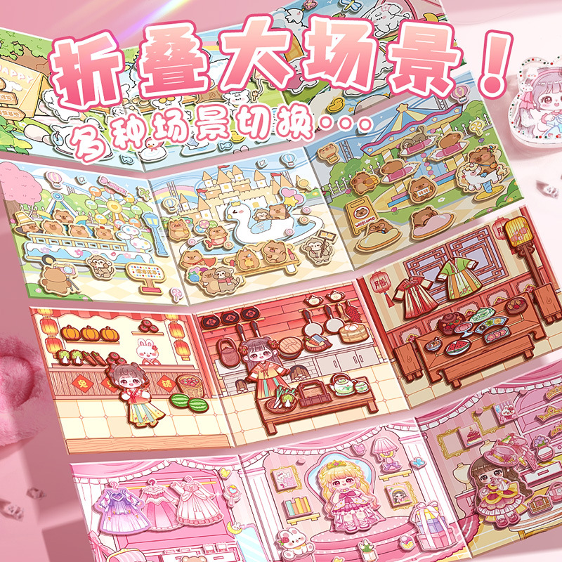新型カバ磁気静かな本手作りDIYマグネット着せ替えシーン女の子知育玩具無料制作