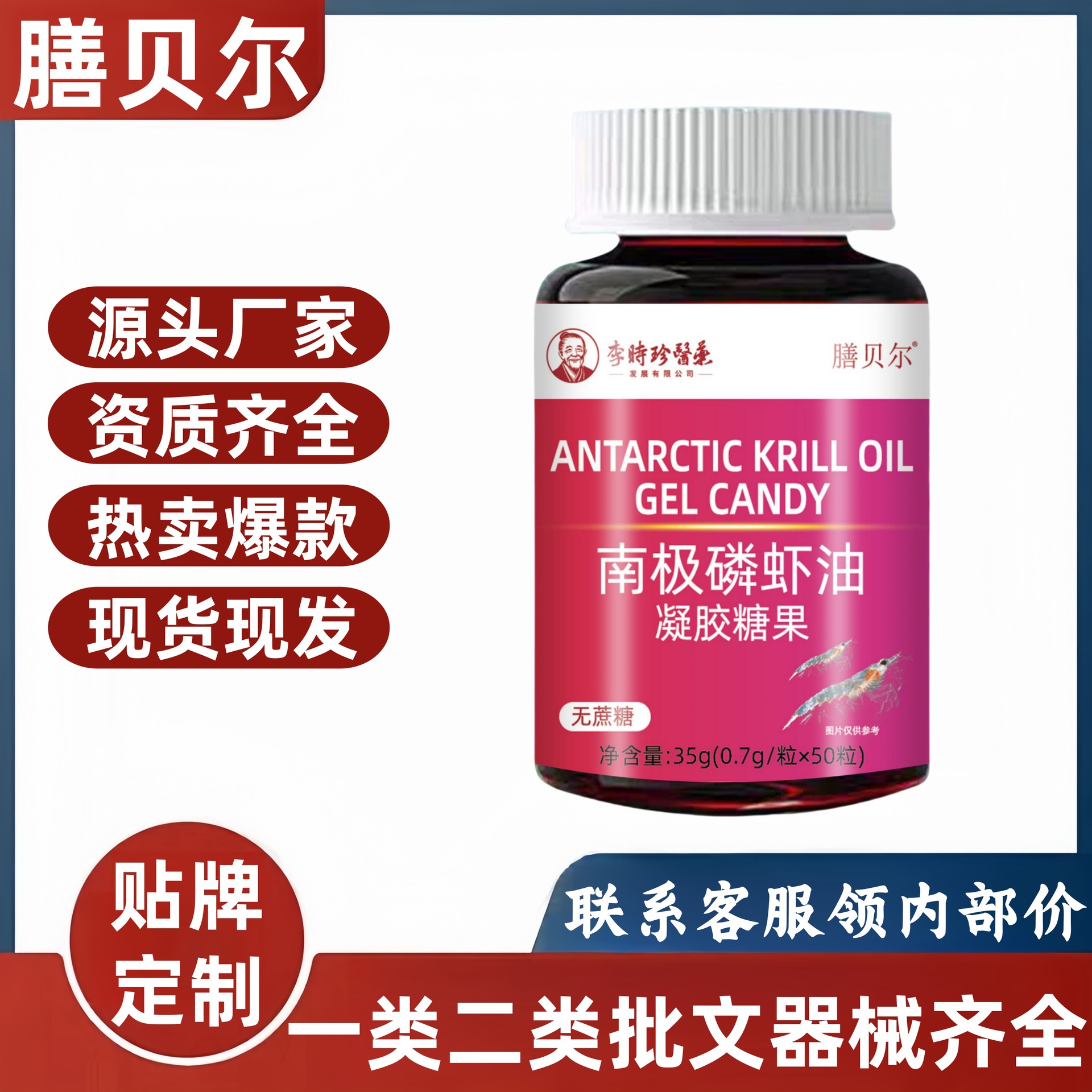 李時珍南極リンエビ油膳ベルゲルキャンディー50粒源工場は大量の価格を代行します。