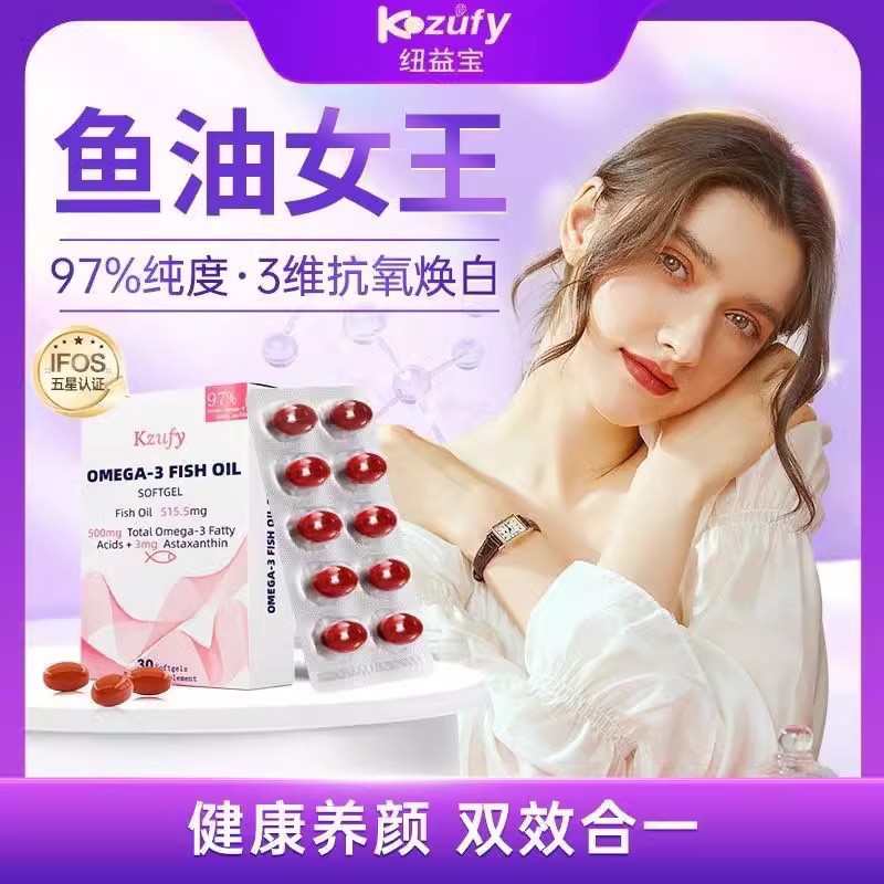 Kzufy小粉ドリル魚油97% 純度深海女子アスタキサンチンomega 3抗酸素雪肌美容30粒
