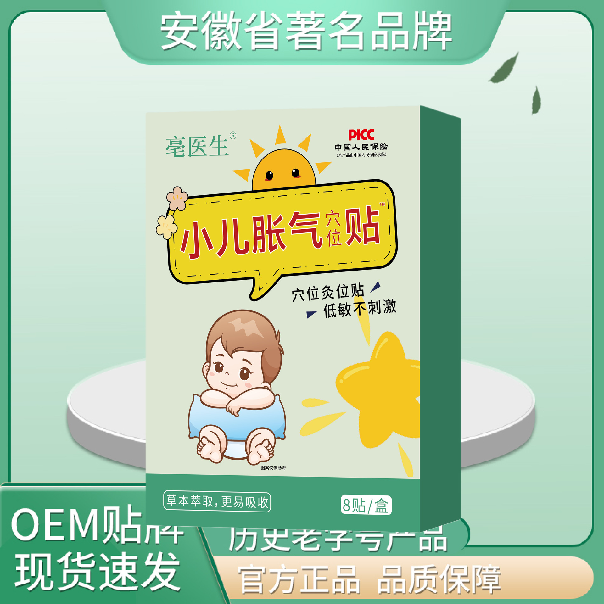 亳医師の小児用鼓腸穴貼り薬8枚入りグリーンボックス、メーカー直販、一件代発送、高品質保証