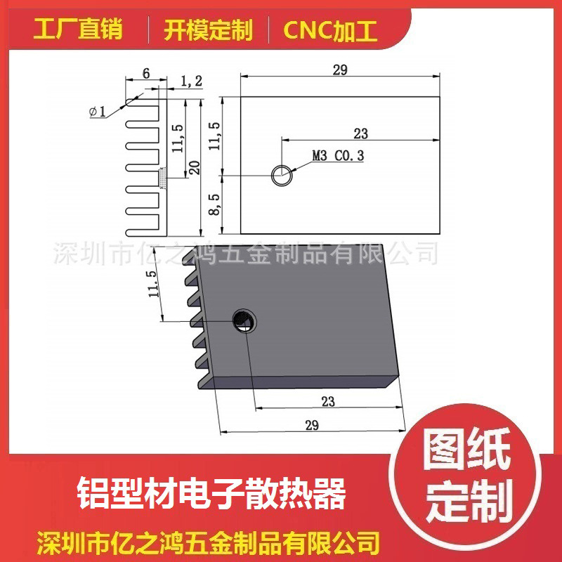 東莞電子型材チップヒートシンクメーカー見積販売中20*6*29