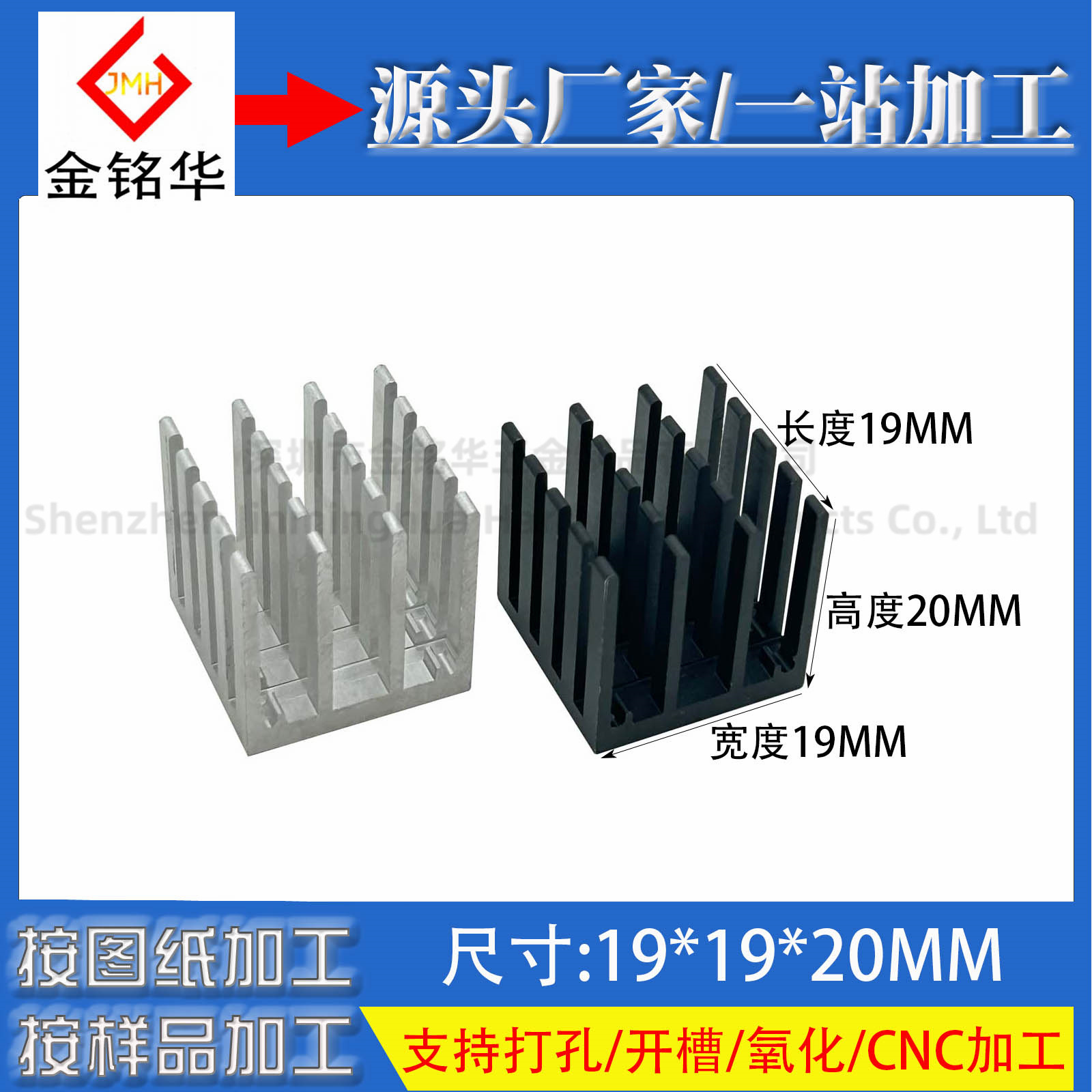 アルミ形材ヒートシンクYHR20 15*10 * 20mm黒色単針放熱器