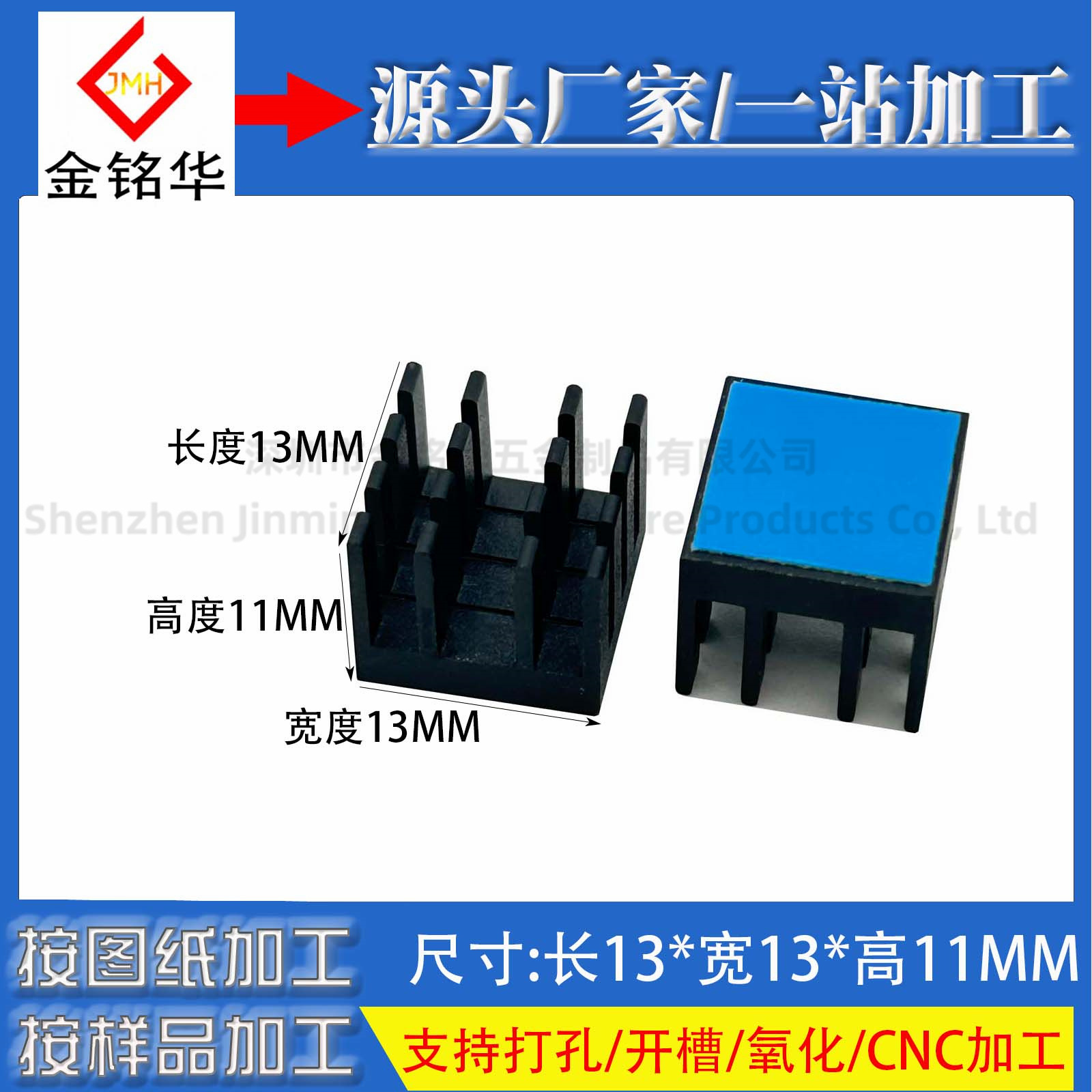 アルミプロファイル粘着ヒートシンクスロット付き 13*13*11 ミリメートル電子チップ IC グラフィックスカードラジエーターメーカー直販