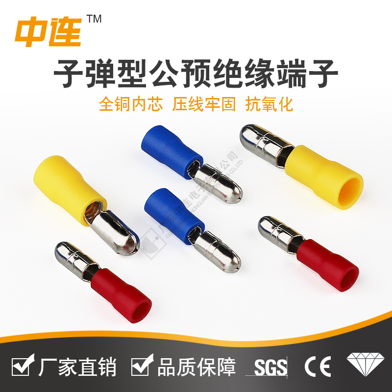 中連工場直営冷圧端子弾丸型公予備絶縁MPD1.25-156PVC絶縁銅めっき錫公