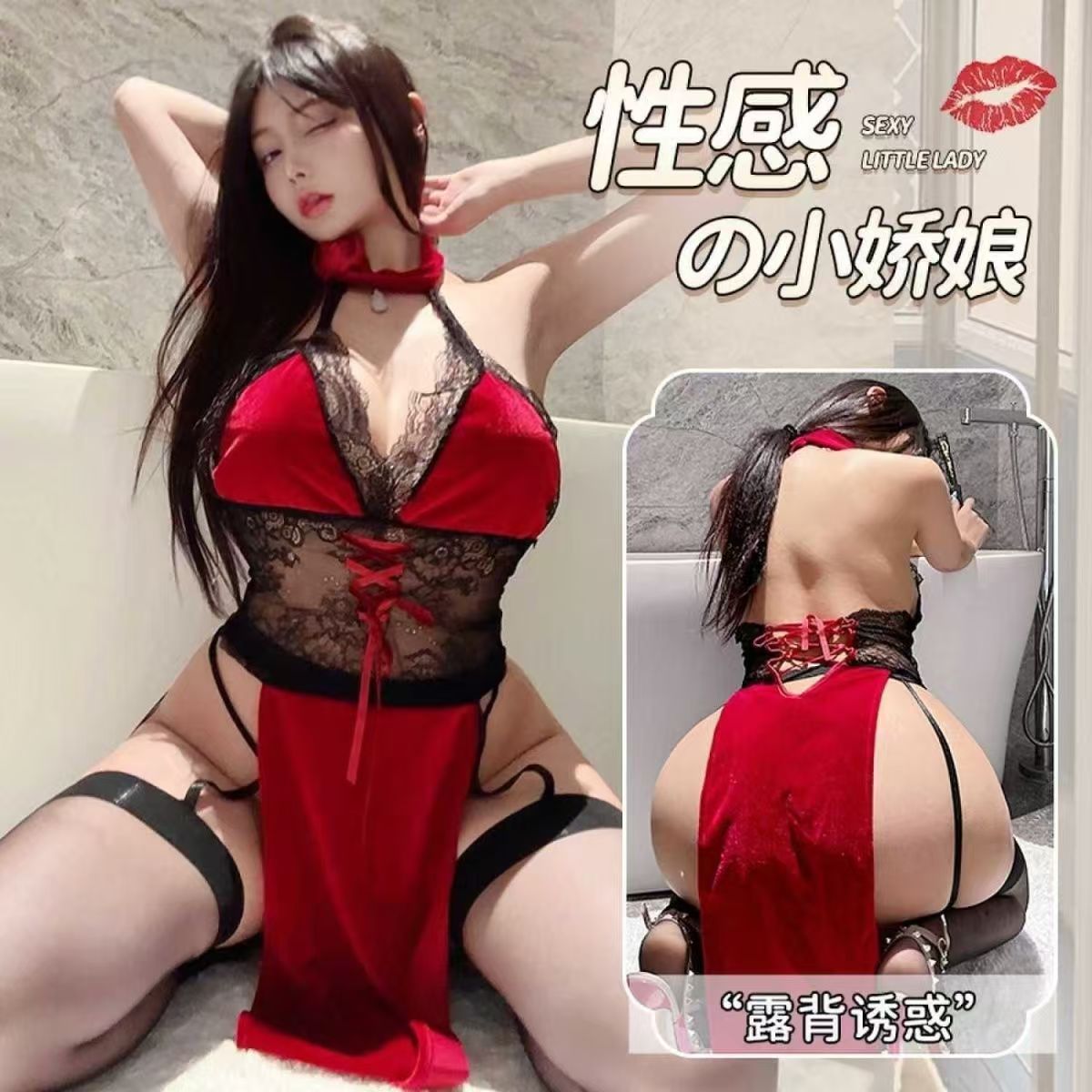大きいサイズの趣味の下着のセクシーな女性のパジャマの透かし彫りの背中のレースのチャイナドレスは私の部屋を脱いでスカートを寝て彼氏に会います。