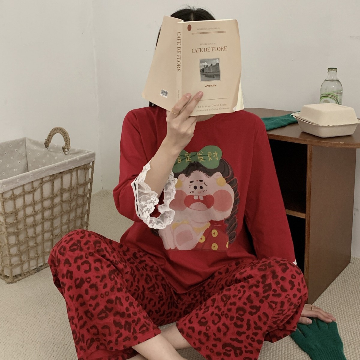 金持ちになった新しい赤いおめでたいパジャマ女性秋冬綿質かわいいアニメ本命年家庭服春秋スーツ