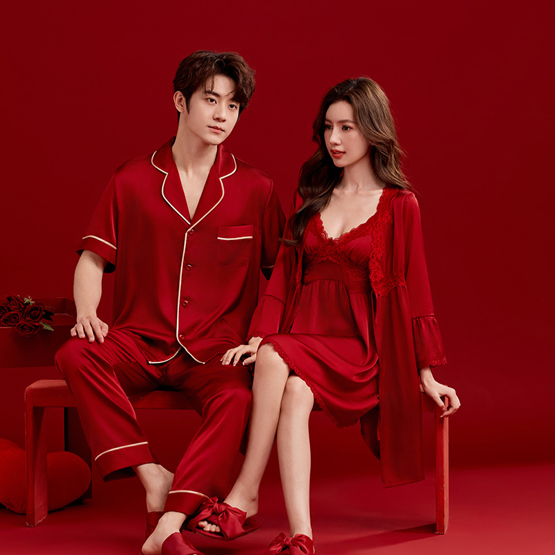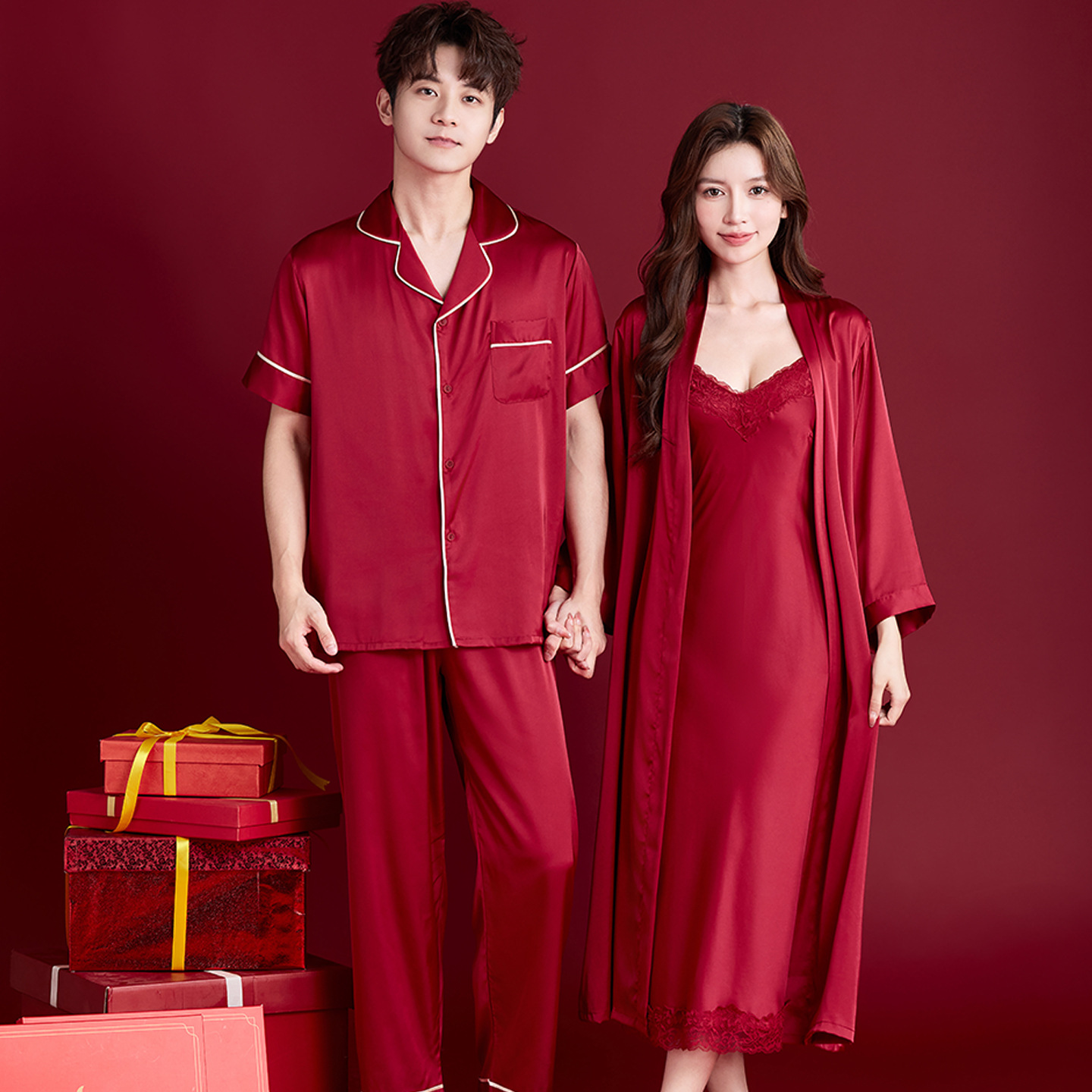 パジャマ結婚新婚カップル氷糸お祝い赤春秋金本命年男女結婚用ホームウェアセット