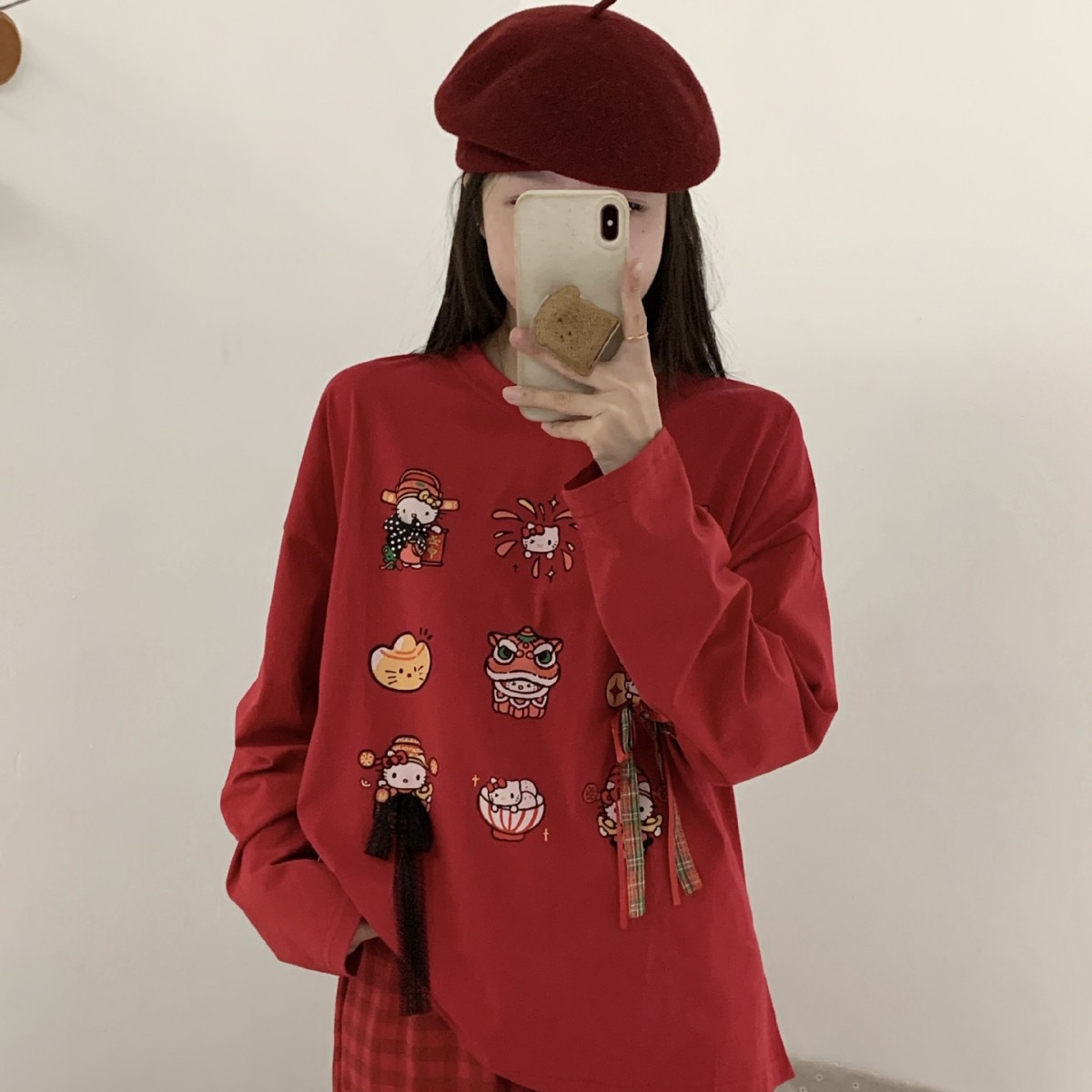 春の新型の赤いアニメの純綿の赤い家庭服は新年の本命年の秋冬にスーツを着ることができます。