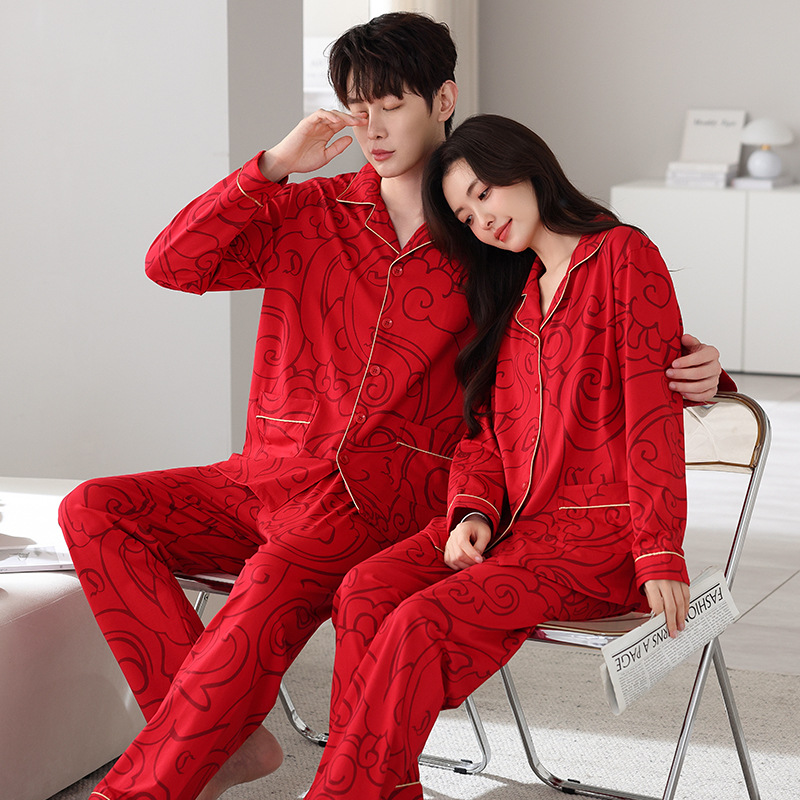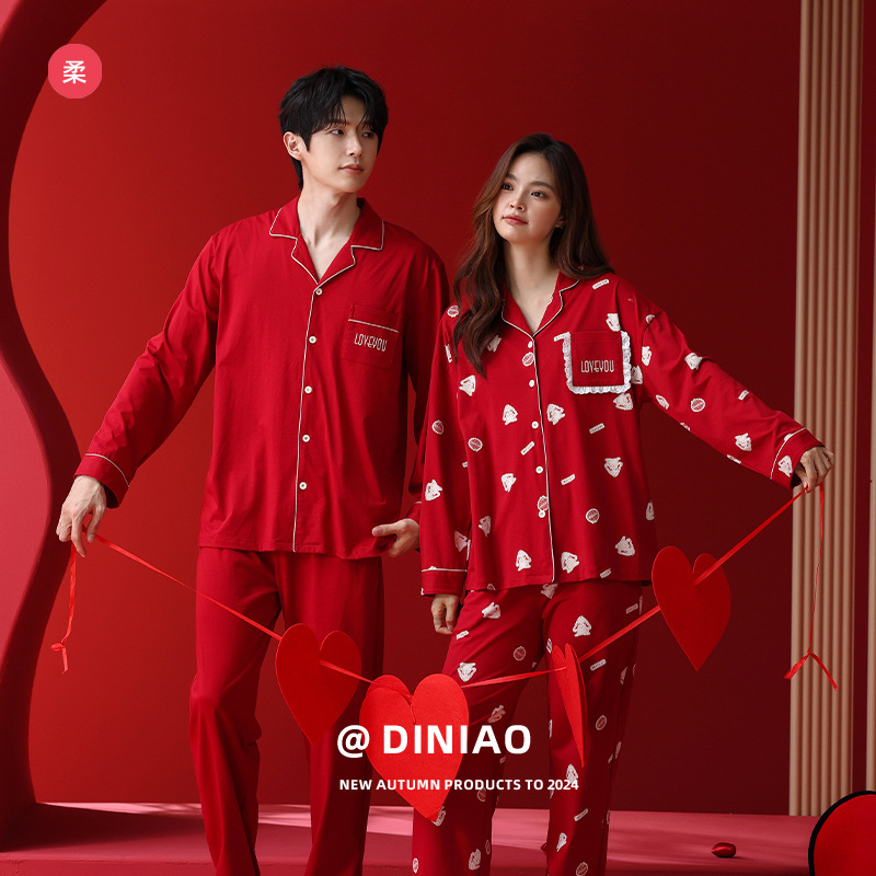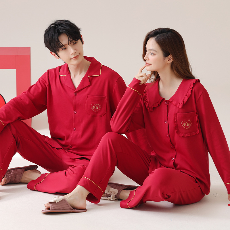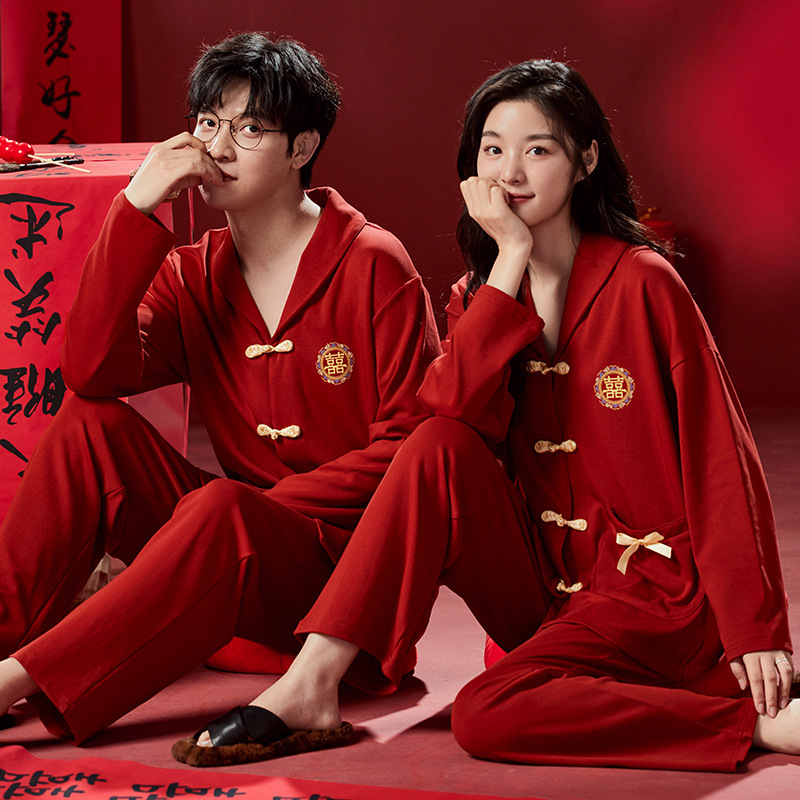 結婚新婚カップルパジャマ春秋タイプ女性純綿長袖おめでたい赤い本命年男性ホームウェア