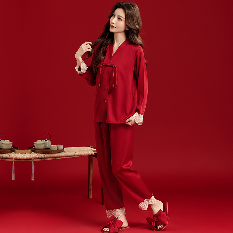 新婚本命年カップル結婚赤いお祝い女性パジャマ男新婚長袖春秋綿ホームウェアセット
