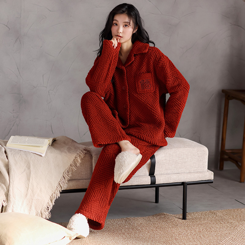 カップル本命年冬新婚コーラルフリース男性女性赤いお祝いベルベット厚い保温ホームウェアスーツ