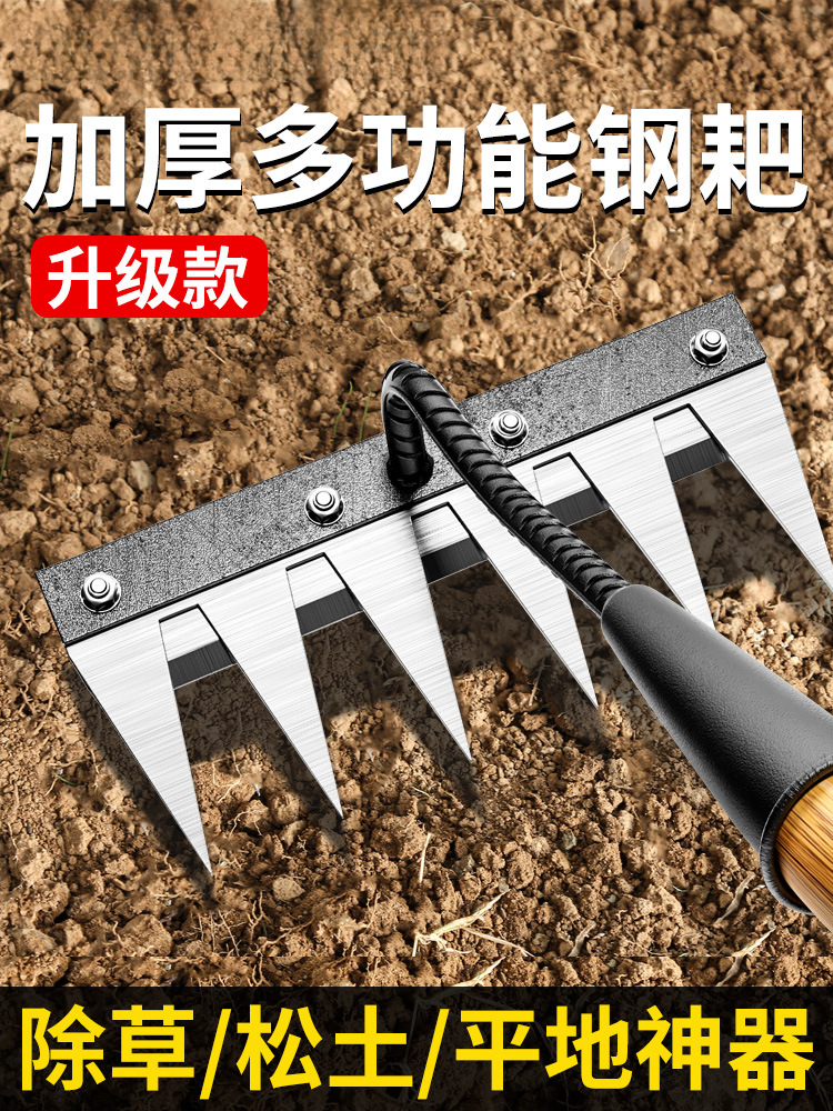 多機能除草ツール、草刈り鍬、除草レーキ、マンガン鋼の耕起および土壌ほぐし農業用草レーキ