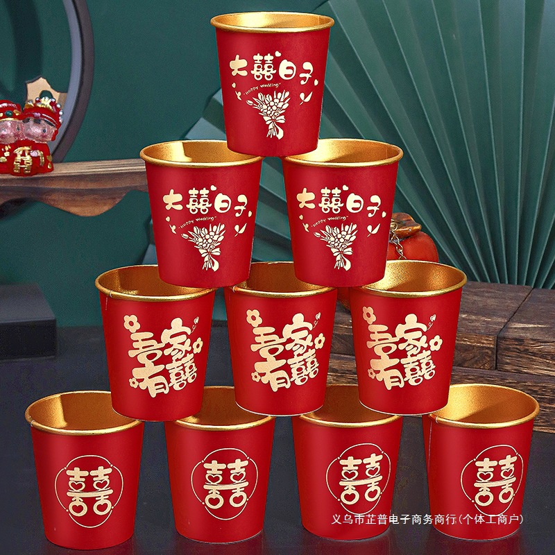 結婚式の紙コップ使い捨てウェディングカップウェディング用品コレクション結婚式婚約ホームウェディング宴会赤い厚みのあるウォーターカップ
